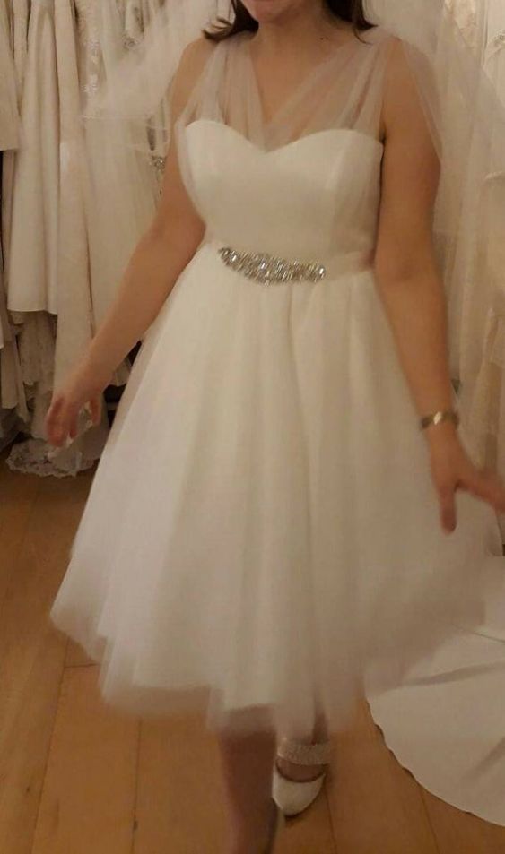 Simple Tea Length Wedding Dresses, Tulle Bridal Gowns