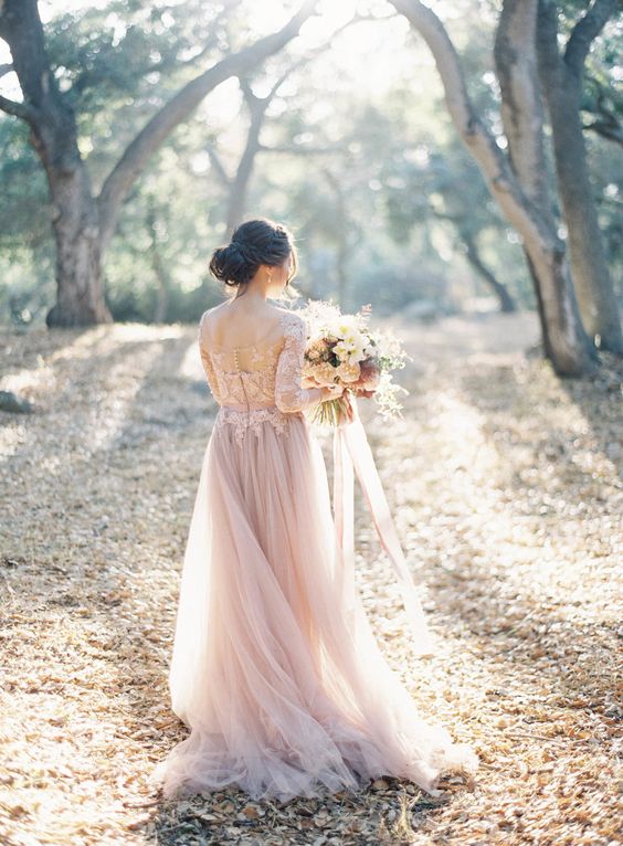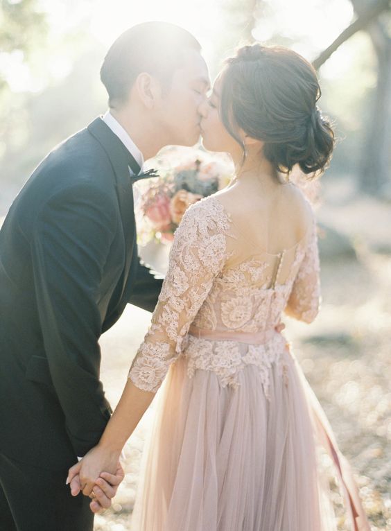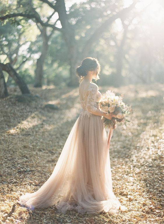 3/4 Sleeve Champagne Wedding Dresses with Lace Appliques