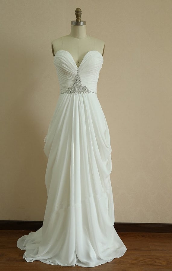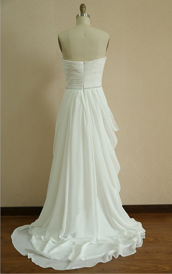 White Chiffon Beach Wedding Dresses with Ruffled Skirt, Boho Bridal Gowns