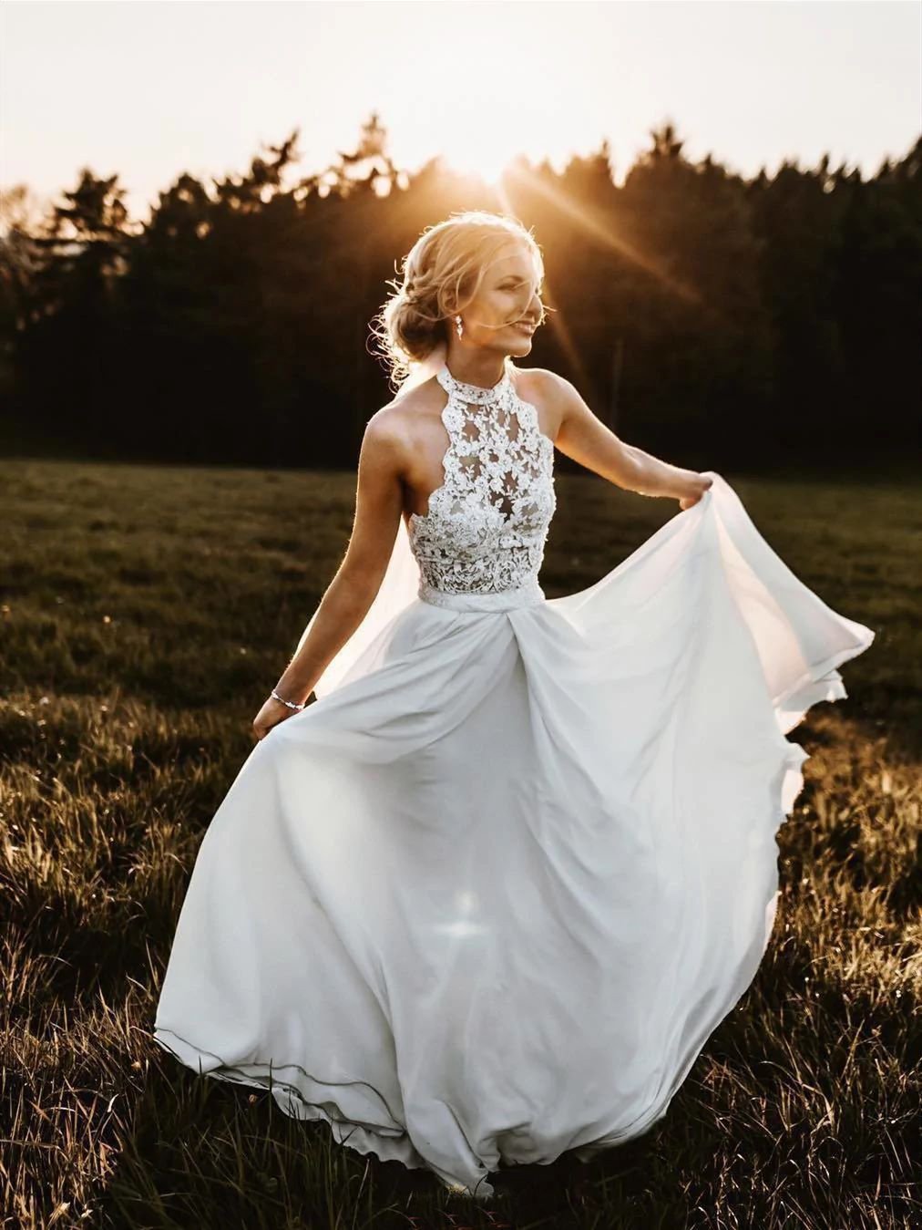Halter Lace Appliques Wedding Dresses A-Line Beach Bridal Gown