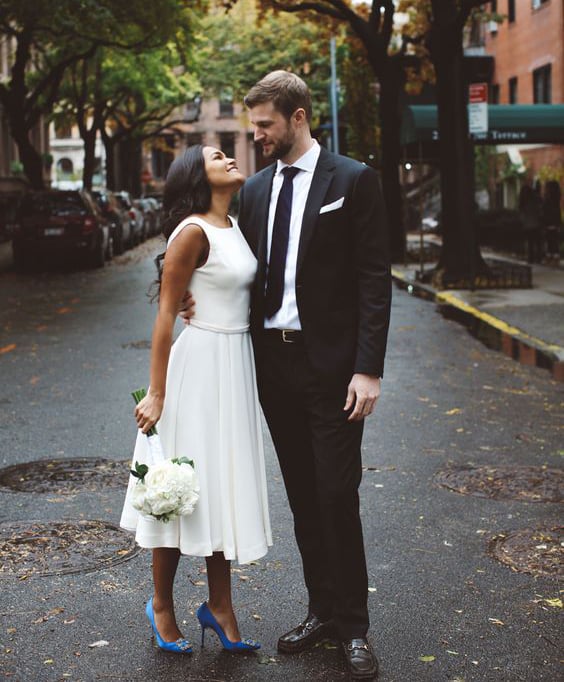 White Satin and Chiffon Tea-Length Wedding Dresses