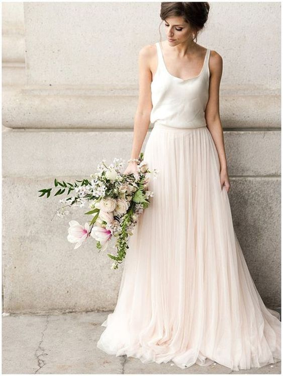 2 Pieces White and Pale Pink Wedding Dresses, Garden Bridal Gowns