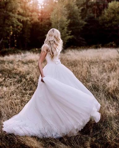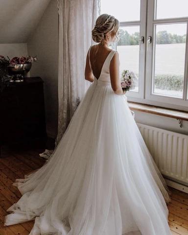 Satin and Tulle Puffy Wedding Dresses with Bow