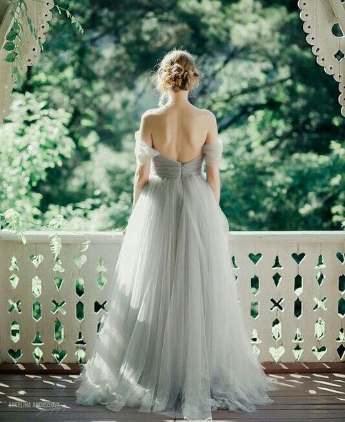 Off-the-shoulder Blue Gray Wedding Dresses, Colored Wedding Gown
