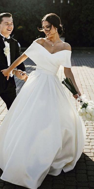 Off-the-shoulder Satin White Wedding Dresses, Long Bridal Gowns