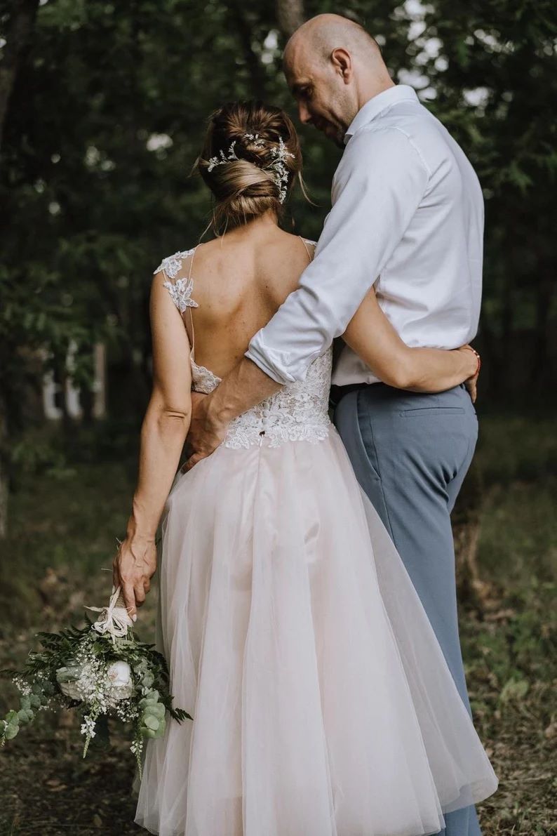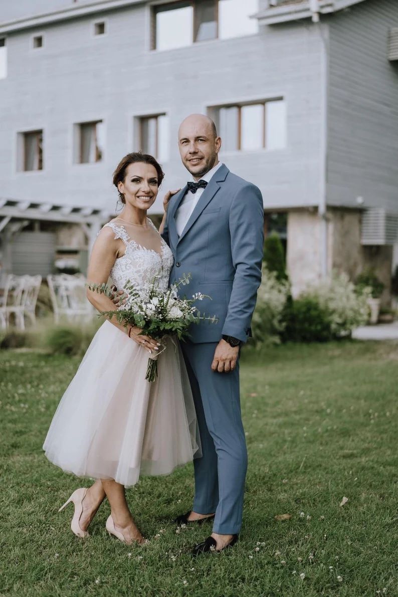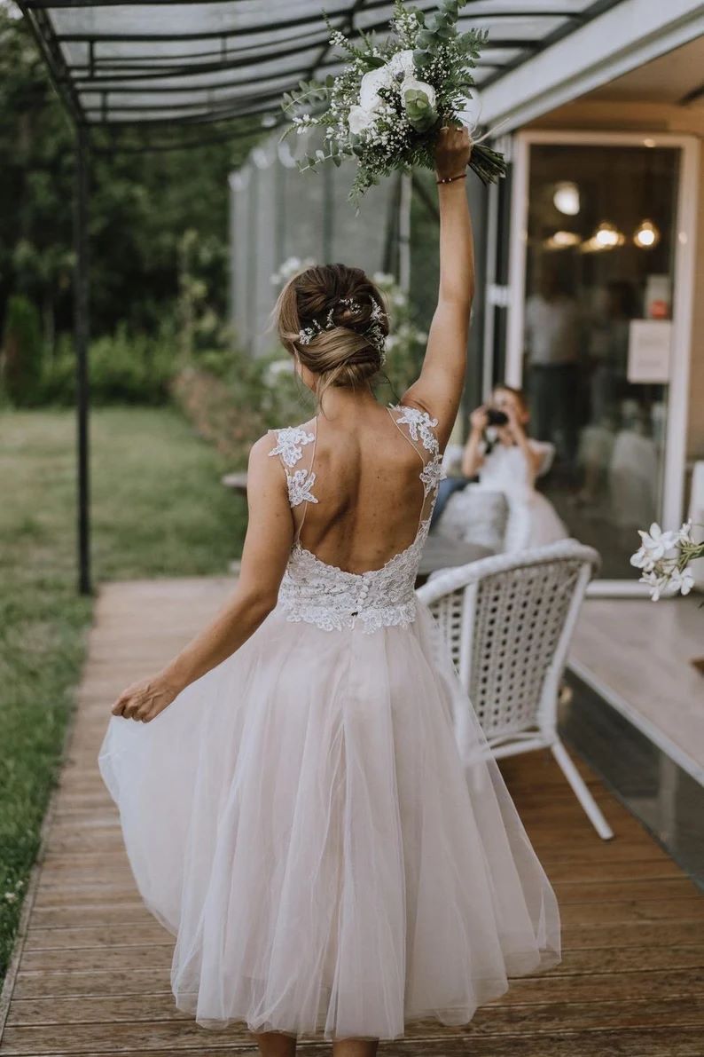Tea-Length Wedding Dresses with Lace Appliques