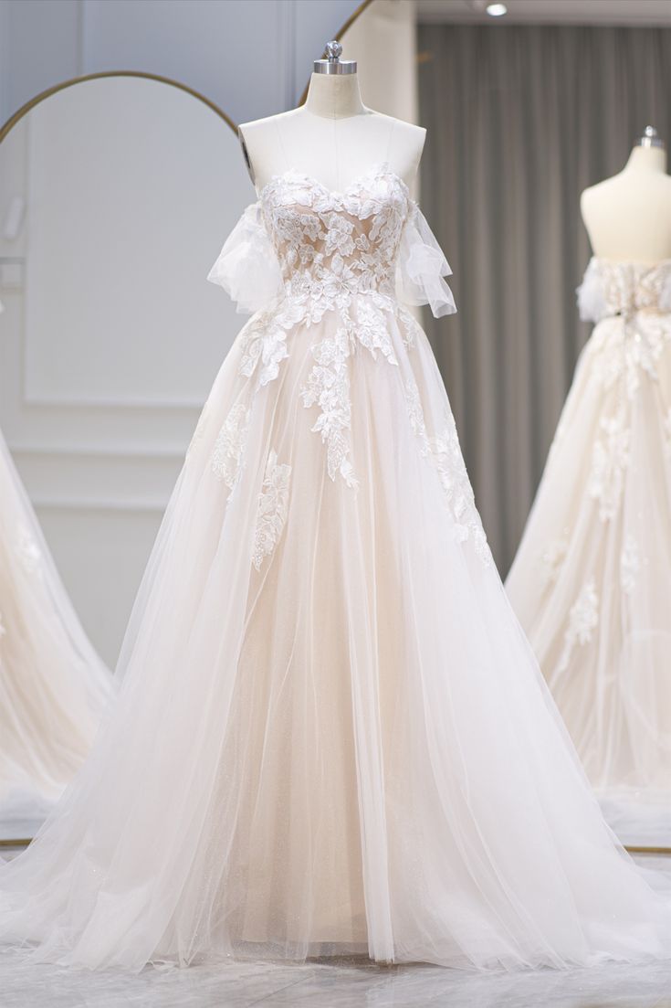 Lace Wedding Dresses A-Line with 3D Appliques, Boho Bride Dress