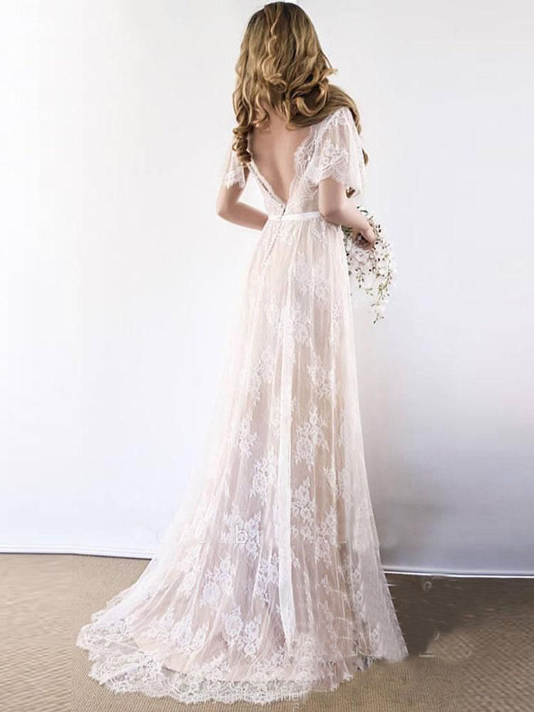 Lace Boho Wedding Dresses with 3D Flowers Appliques