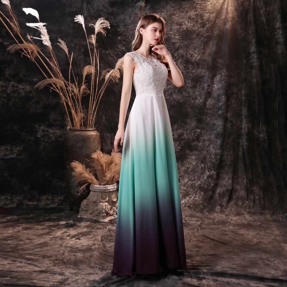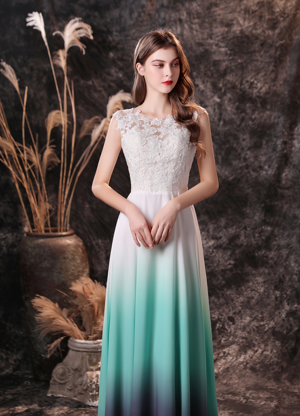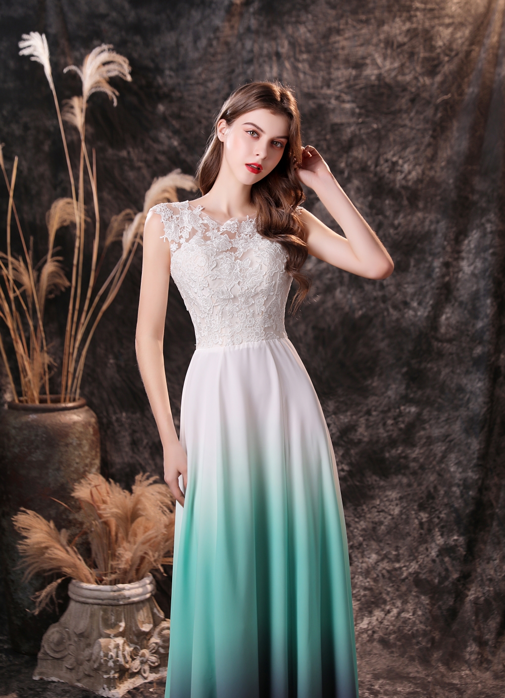 Scoop Ombre Chiffon Wedding Party Dresses, Long Prom Dresses, Wedding Guest Dresses