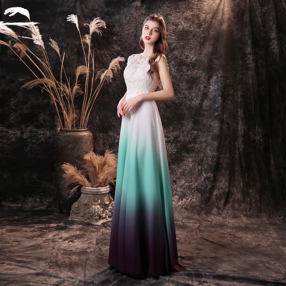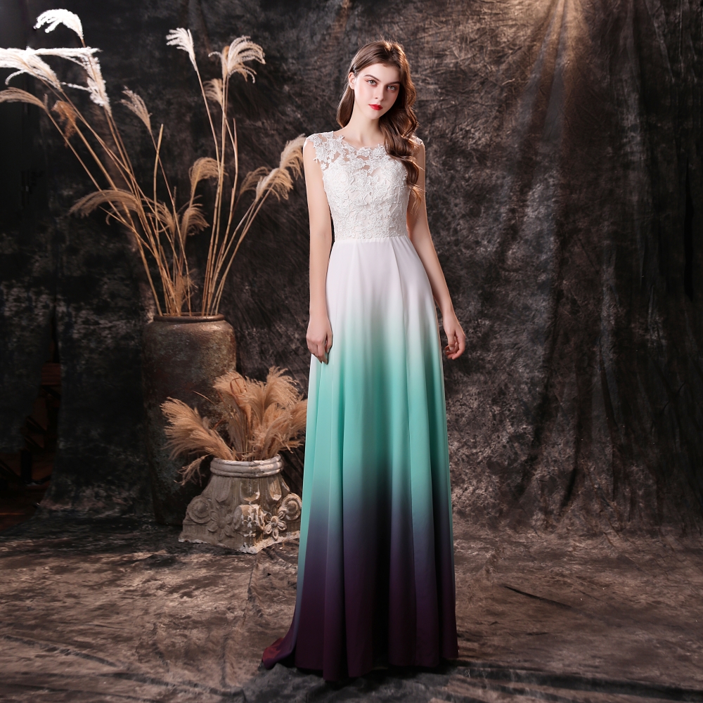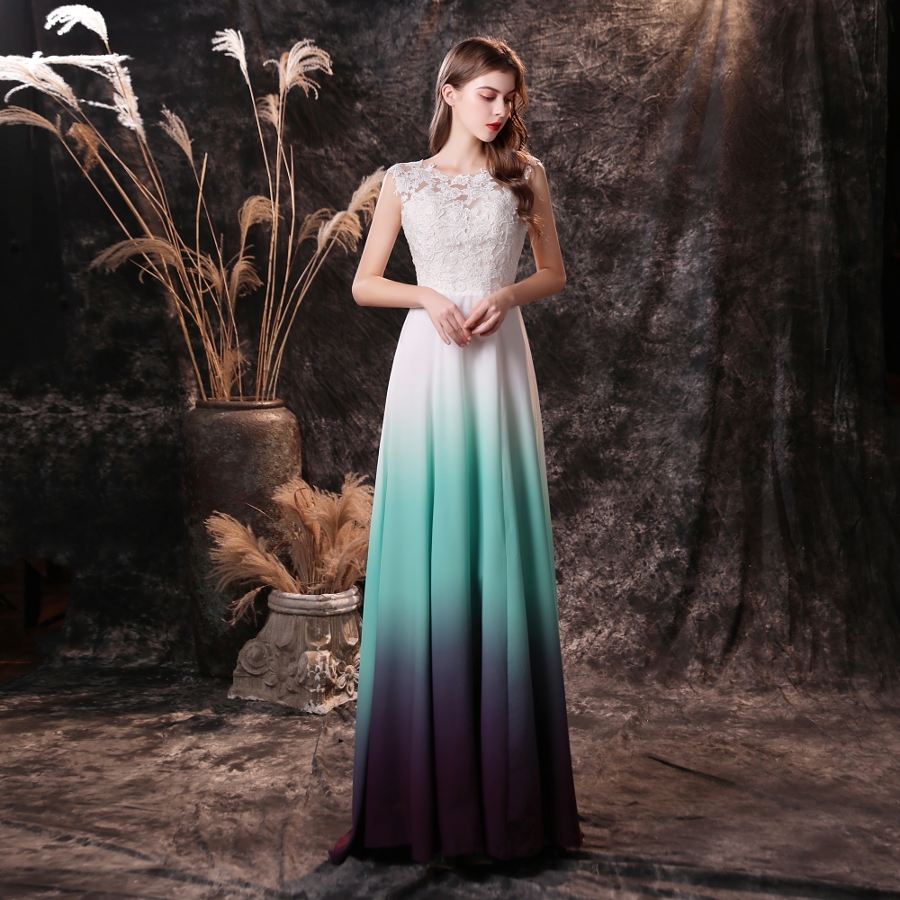 Scoop Ombre Chiffon Wedding Party Dresses, Long Prom Dresses, Wedding Guest Dresses