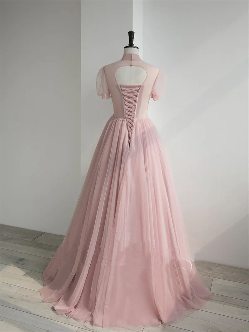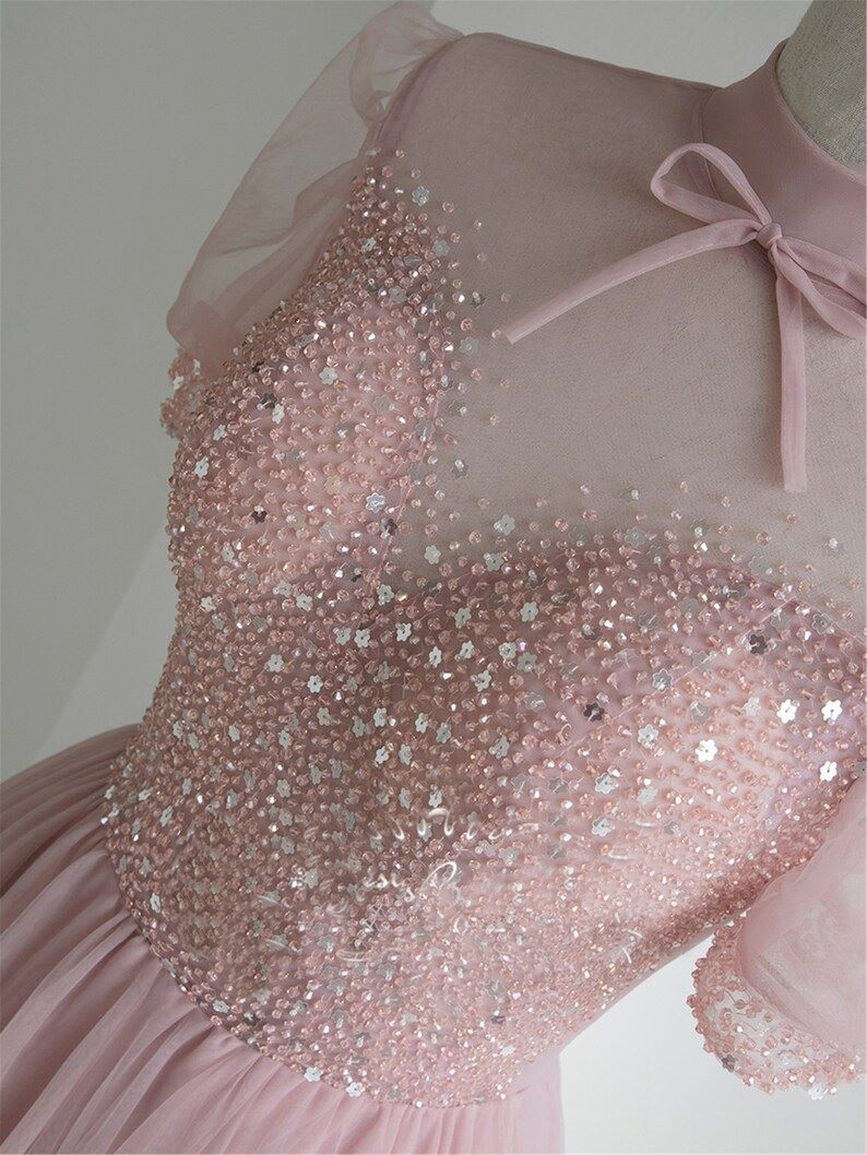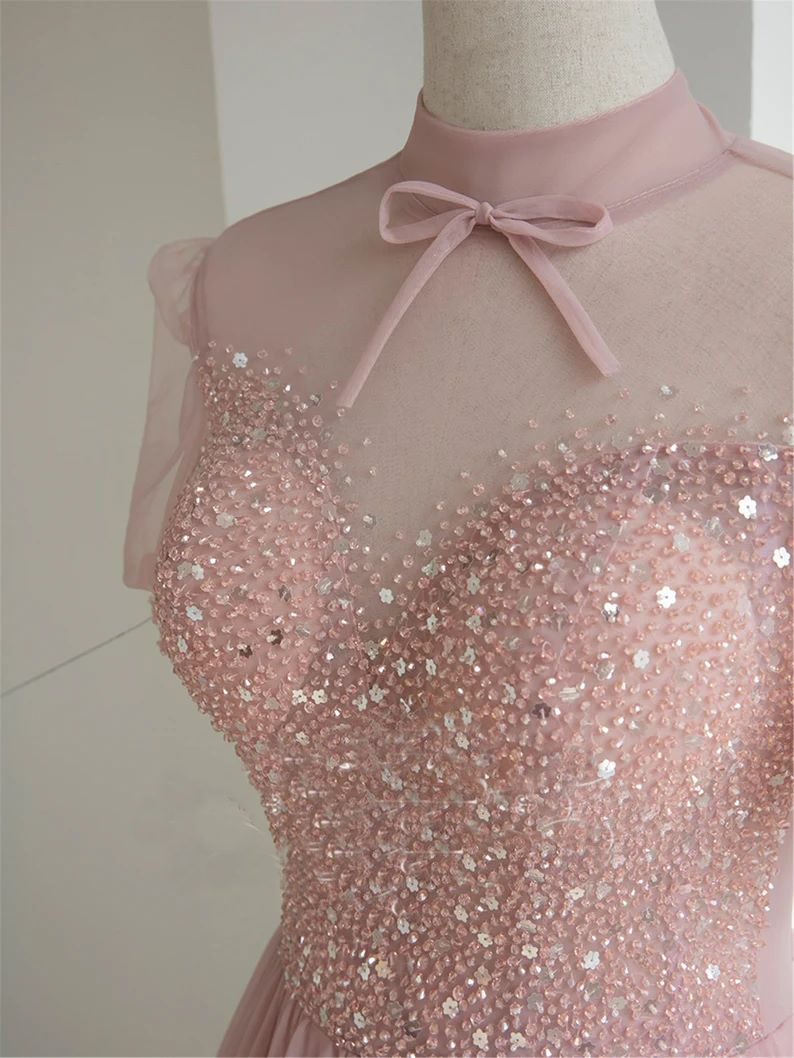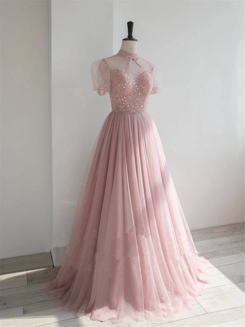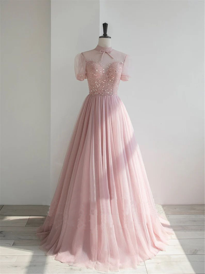 Pink Prom Dresses, Long Evening Dresses, Formal Dresses, Beaded Party Gown