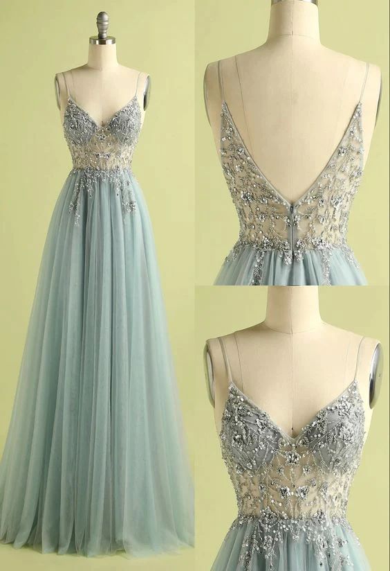 Spaghetti Straps Sexy Prom Dresses, Long Party Dresses