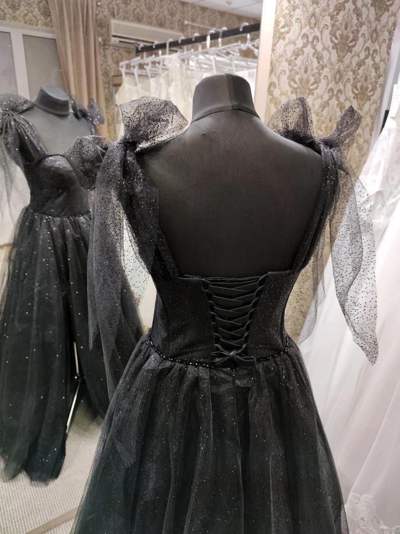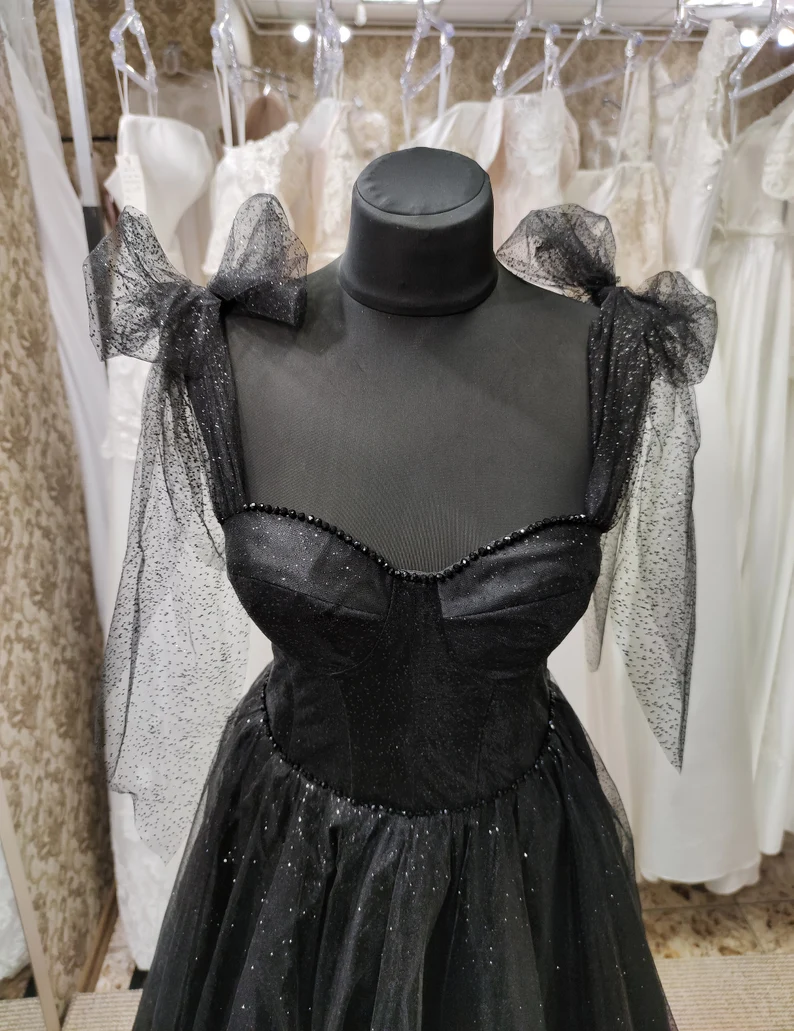 Black Wedding Dresses with Beading, Colored Wedding Gown, Gothic Bridal Dress