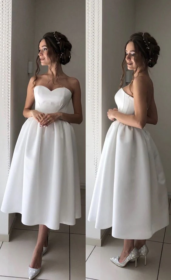 Vintage Satin Sweetheart Wedding Dress prom dress Tea Length