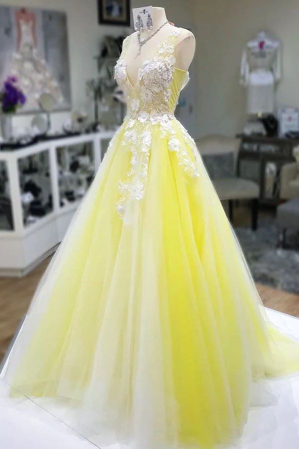 Yellow Prom Dresses, Wedding Party Dresses, Long Formal Dresses