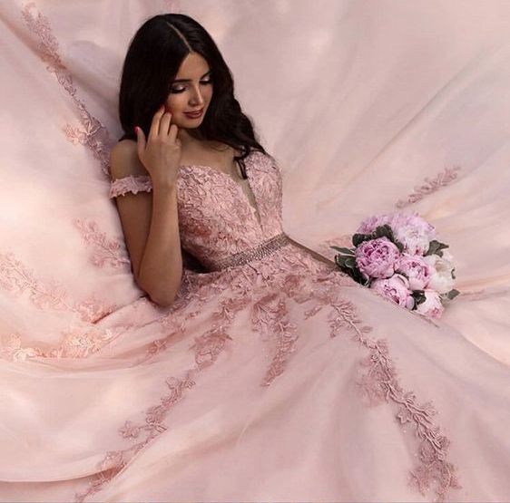 Pink Wedding Dresses with Delicate Lace Appliques, Colored Bridal Gowns
