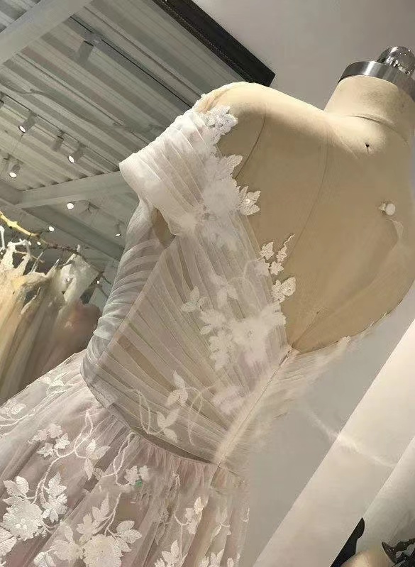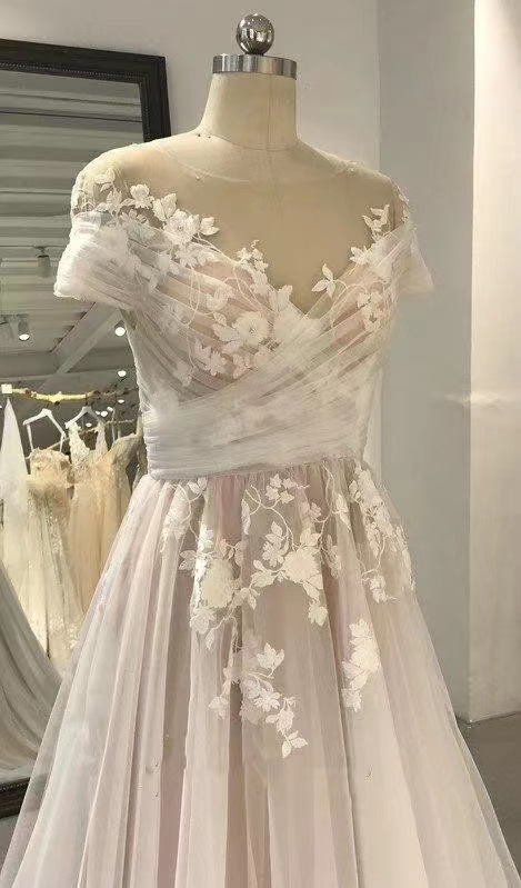 Champagne Wedding Dresses with Lace Appliques