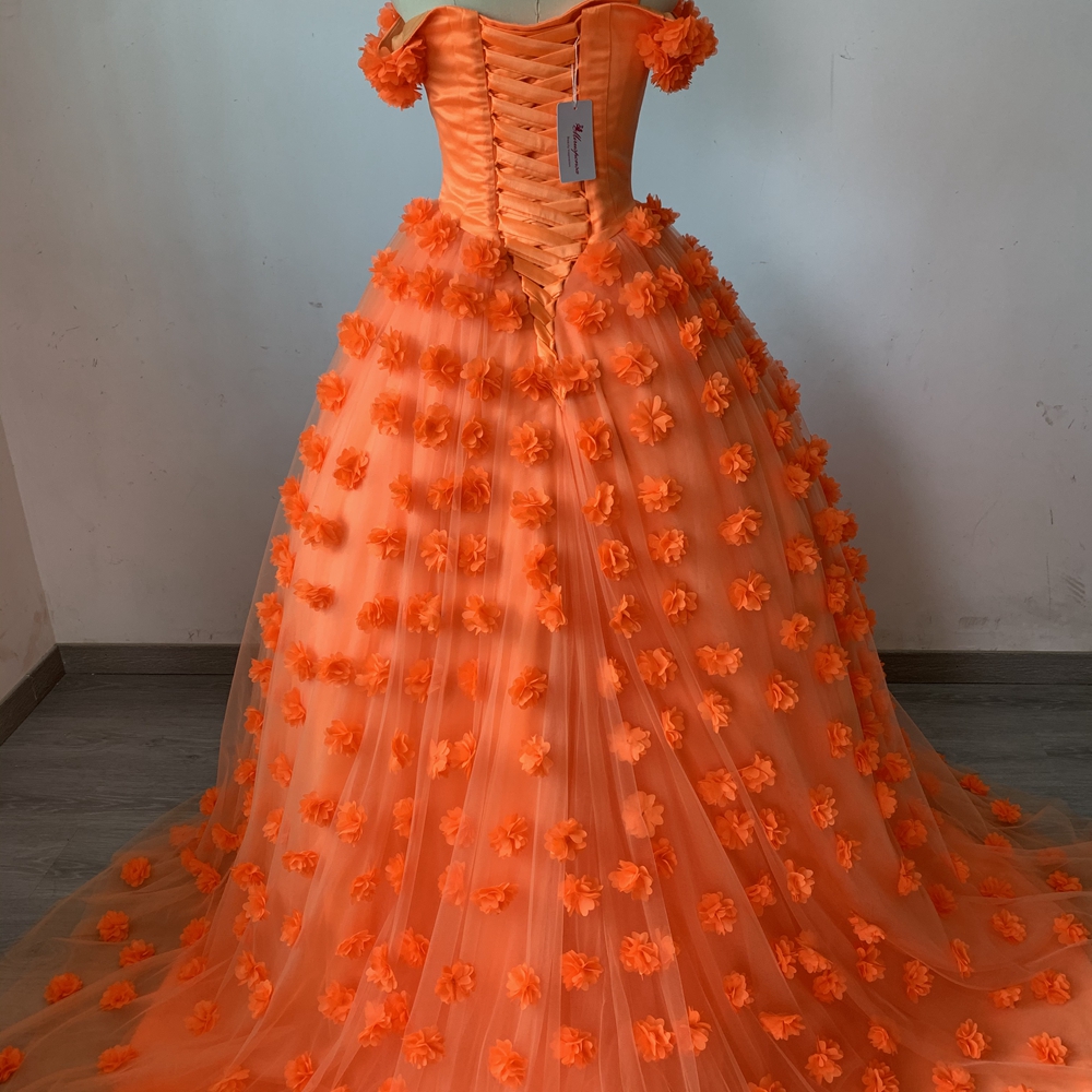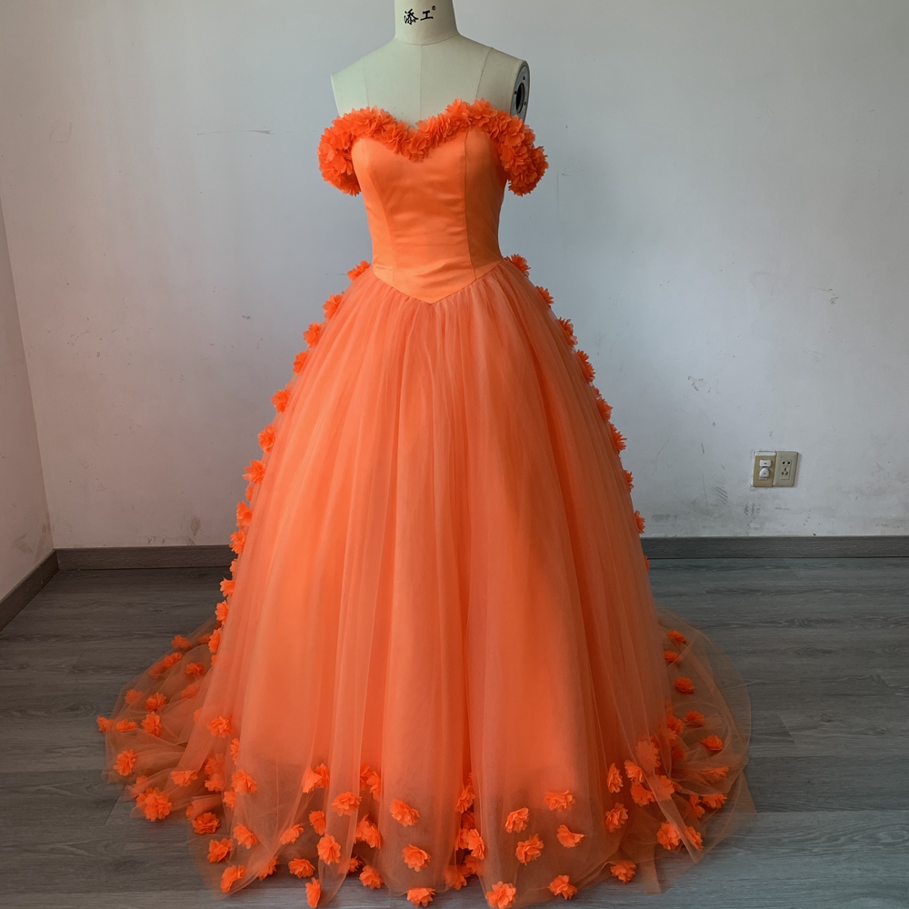 Orange Floral Wedding Dresses, Ball Gown Wedding Dresses, Quinceanera Dress, Colored Wedding Dresses