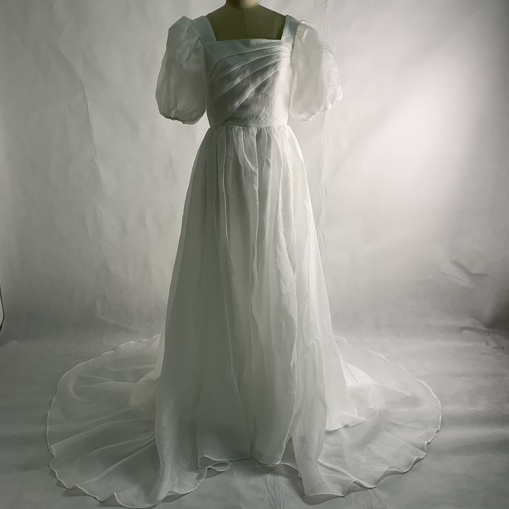 Gauze Fabric Wedding Dresses with Puffy Sleeves, Long Bridal Gowns