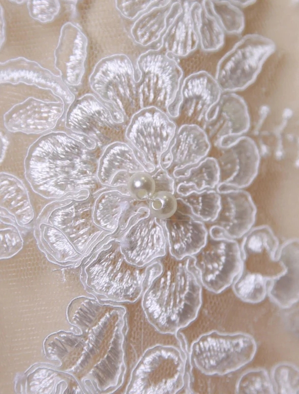 Champagne Wedding Dresses with White Lace Appliques
